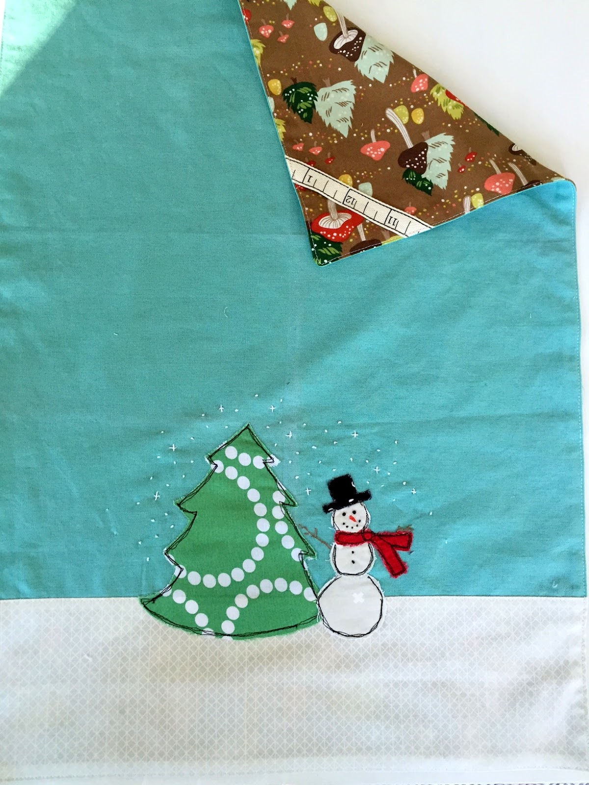 For the Handmade Holidays series I thought it would be fun to make an applique dishtowel. This makes a great hostess or neighbor gift, and since it is more winter-y than Christmas-y your recipient can leave it out long after the holiday decorations have been put away.
